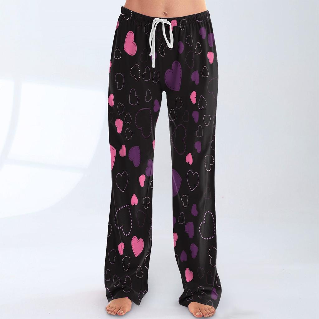 Damen Pyjamahose Nachtwäsche Lässige Hose mit Kordelzug und elastischer Taille Bequeme gerade lockere Yogahose