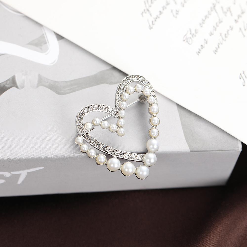 1PC Fake Pearl Couple Elegant and Precise Brooch Heart Brooch Heart-Connected Jewelry