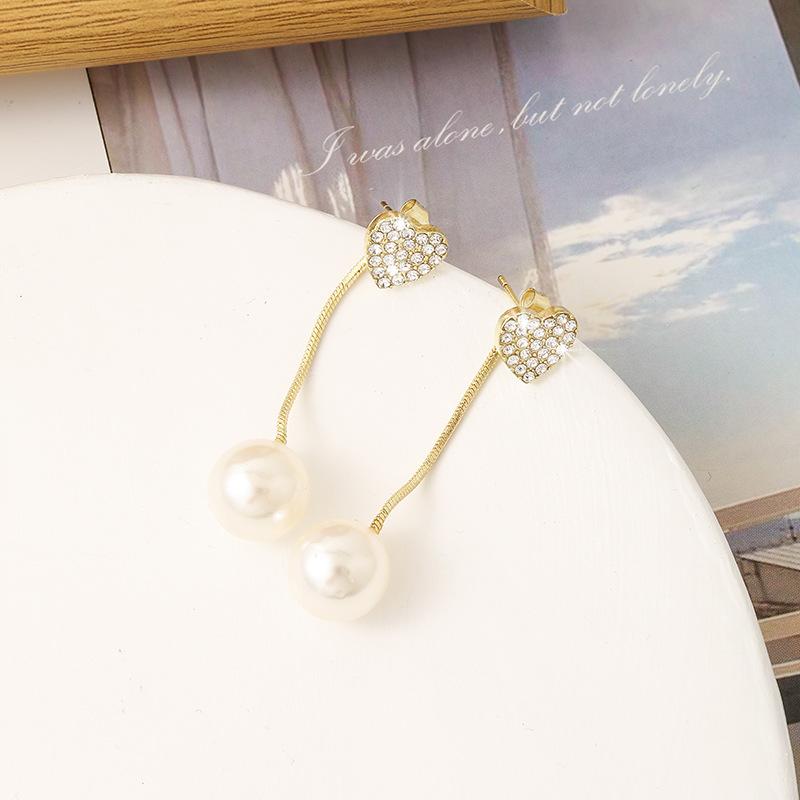 Pearl Earrings for Women, Stud Earrings with a Light and High-End Feel, Silver Needle, Elegant Heart-Shaped Earrings, New Design, Vintage Style Drop