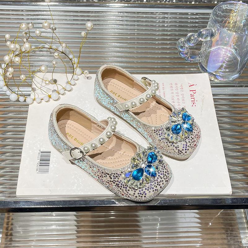 Tong Aisha crystal princess shoes season Xiaoxian foreign style pearl ladyshoes children's rhinestone single shoes