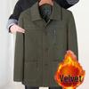 This Men's Mid-Aged Full Fleece Jacket is designed for the stylish gentleman seeking comfort and elegance during the spring or autumn seasons. Featuring a tailored lapel neckline and long sleeves, this insulated outerwear ensures warmth without compromising on style. The jacket showcases a solid pattern, crafted from high-quality wool material with a soft wool fur lining, offering both luxury and durability. Ideal for those who appreciate classic dad and grandpa styles, this jacket is a versatile addition to any wardrobe, perfect for outings or casual everyday wear.