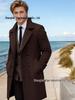 Dieser europäische zweireihige Wollmantel für Herren ist die perfekte Ergänzung für Ihre Herbst- und Wintergarderobe.. Mit einem regulären Schnitt entworfen und aus Wolle mittlerer Dicke gefertigt, bietet es sowohl Komfort als auch Wärme.. Der Mantel verfügt über einen scharfen Schneiderkragen und ein einfarbiges Muster, was einen raffinierten Look gewährleistet, der sowohl für formelle als auch für legere Anlässe geeignet ist.. Ideal für diese kühlen Tage, kombiniert dieses lang geschnittene Oberbekleidungsstück traditionelle Handwerkskunst mit modernem Stil und ist somit eine vielseitige Wahl für jede modebewusste Garderobe.