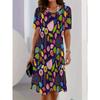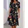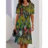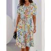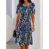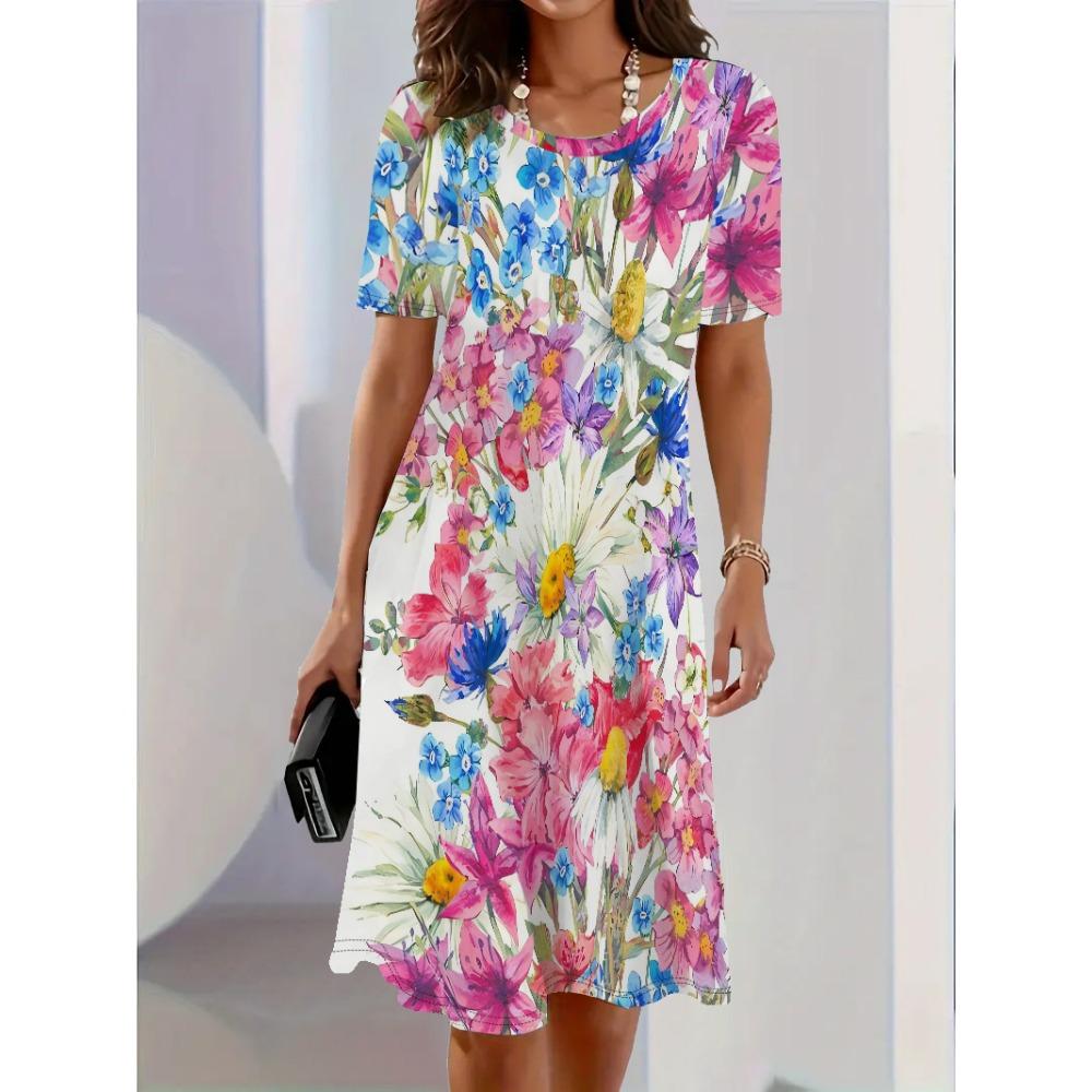 Women Dress Fashion Flower Pattern Printing Summer New Temperament Elegant Casual Women A-Line Dress Short Sleeve Mini Dress