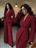 Women's Tailored V-Neck Blazer and Wide Leg Pants Suit Set