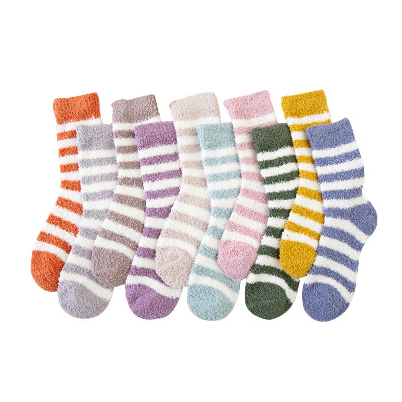 5/10 Paar Lässige Winter Verdickte Gestreifte Korallenfleece Socken für Damen Fleecegefüttert Warme Haus Schlafsocken Mittlere Wade Plüsch Boden Socken Überzieher