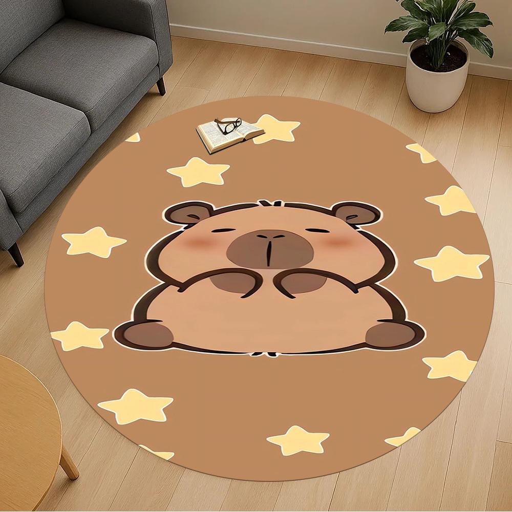1PC Capybara Stars Cute Round Chair mat Area Rug - Non-Slip, Floor Mat for Office, Bedroom, home decor Christmas Gift c0528118