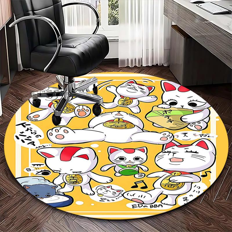 1pc Anime Cat Round Carpet Cute Design for Office Chair Mat, NonSlip Rug Suitable for Home Decor, Living Room