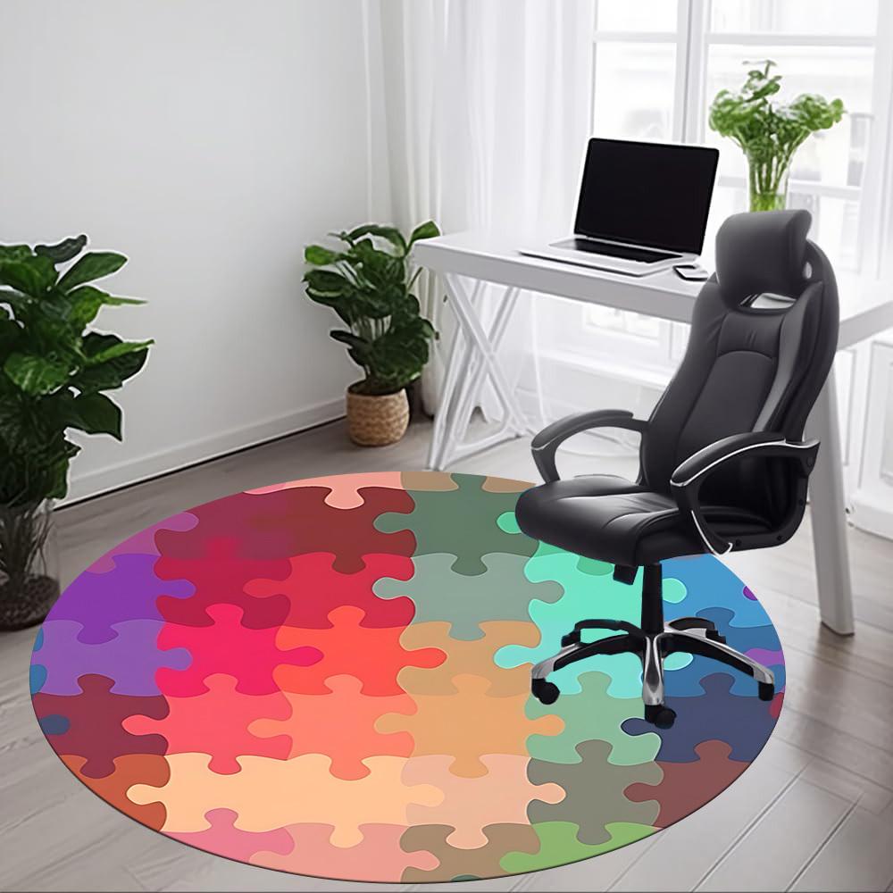 1pc Puzzle Pieces Chair Carpet for Office, Round Non-Slip Durable Large Size Office Carpet, Suitable for Office, Beautiful Decoration