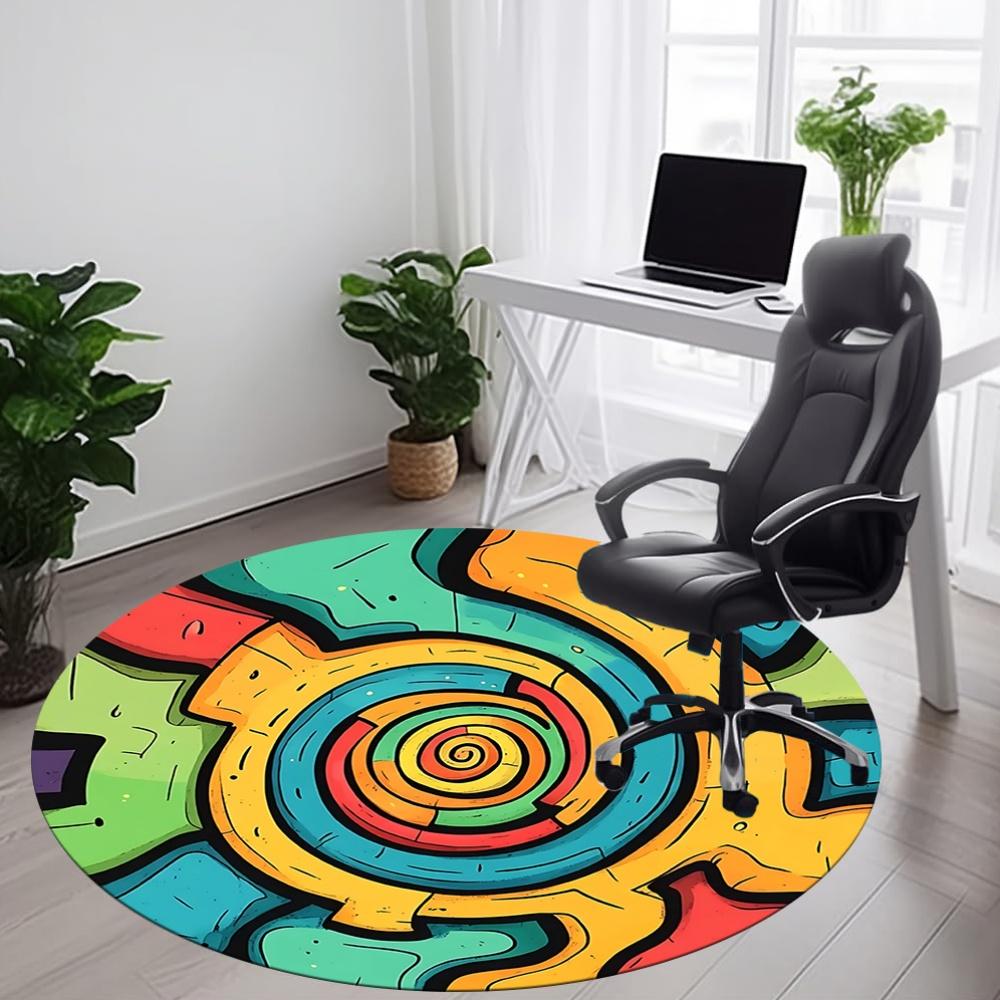 1 Stück bunter Teppich mit Zahnradmuster, runder, rutschfester, langlebiger Teppich in großer Größe für das Büro, geeignet für das Büro