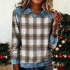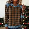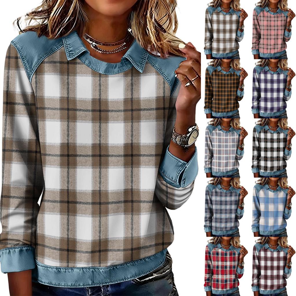 Damenmode Ausgestelltes Langarm Denim Patchwork Sweatshirt Mit Aufdruck Lässiger Pullover Top