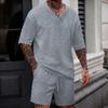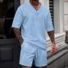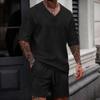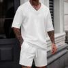 Men's New Casual Color Versatile V-neck Short-sleeve And Shorts Set