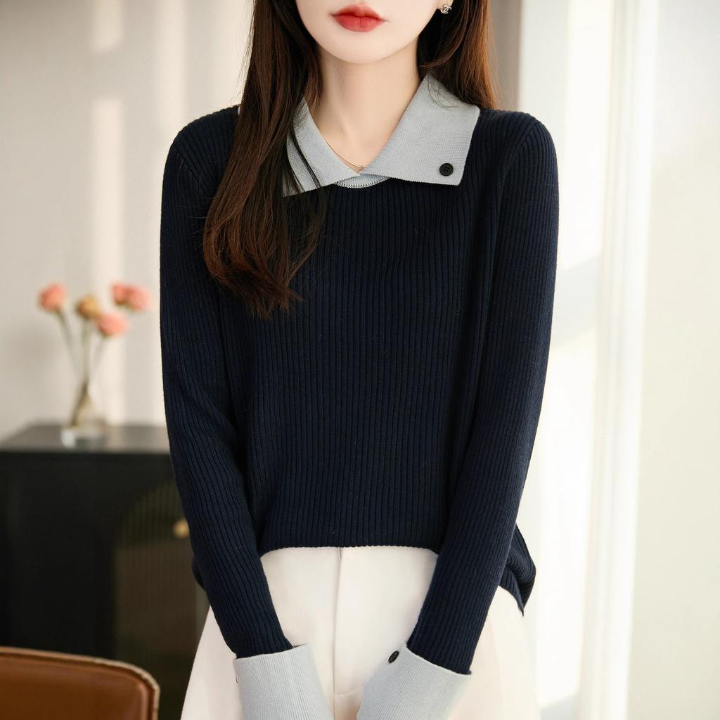 Collarless Long-sleeved Business-style Sweater with Soft and Comfortable Texture, Suitable for All Seasons and Versatile for Various Occasions.
