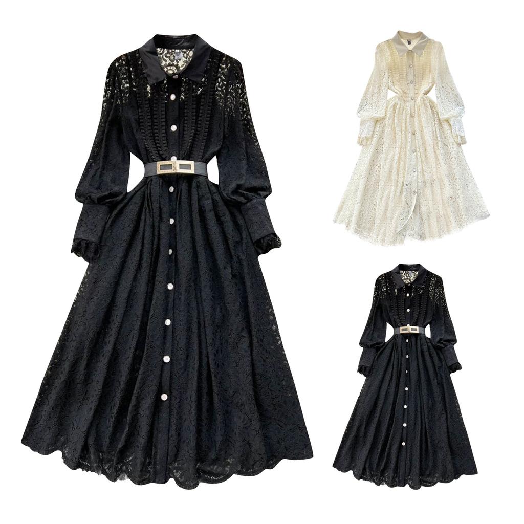 Damenrock mit Revers, aufwendiger Häkelarbeit, hohler französischer Spitze, sexy, langem Schwung, knielang