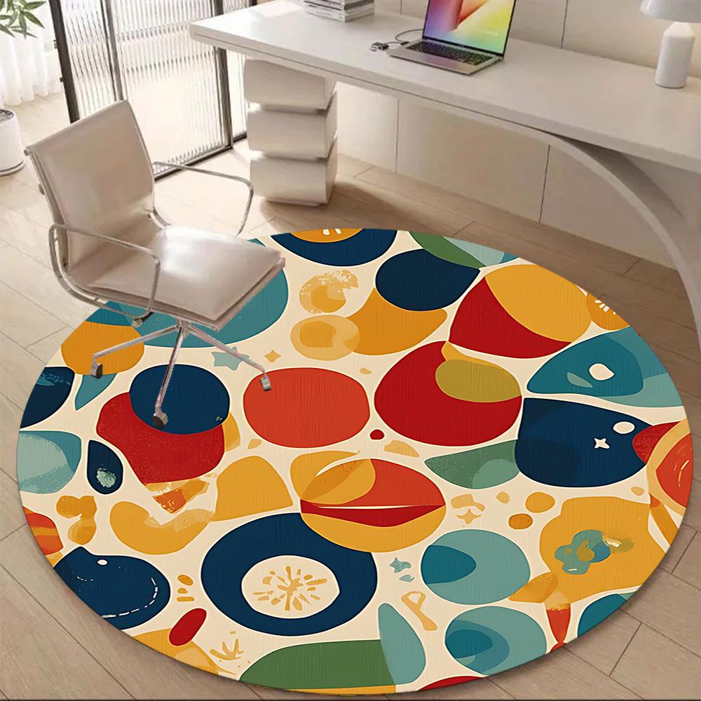 1 Stück Abstrakte bunte Formen Büro Runder Teppich, Matte Geeignet für Büro, Unter Bürostühlen Schlafzimmer Wohnzimmer Heimdekoration, Raumdeko