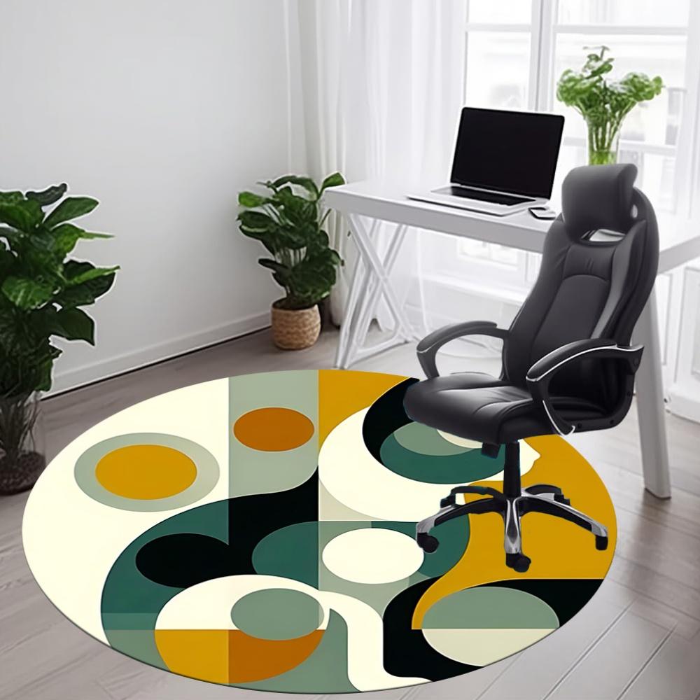 1 Stück Abstrakt geformter runder Teppich für das Büro, Indoor-Matte geeignet für Büro, unter Bürostühlen, Schlafzimmer, Wohnzimmer, Heimdekoration, Raumdeko