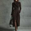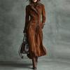 Damen Eleganter Langarmmantel Mit Kragen Und Farbe Wildleder Langer Windbreaker