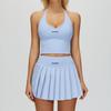 Alosco Plissiertes Yoga-Tanktop & Rock Set - Doppellagig Tennis/Golf/Laufen Fitness Zweiteiler