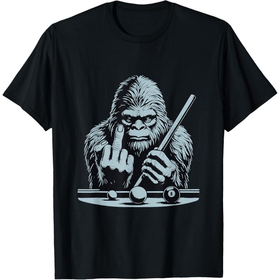 Funny Retro Bigfoot Sasquatch Billiards Bassquatch Pool T-Shirt(1)