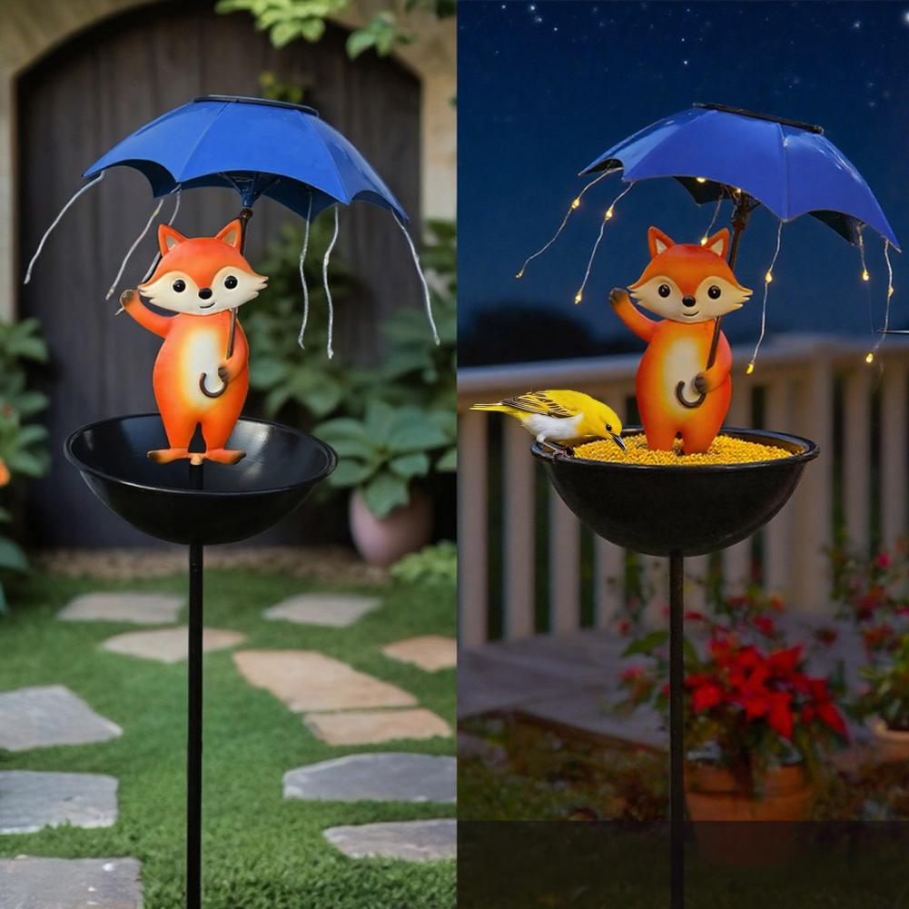 Solar Vogelhaus Stecker Außen Garten Terrasse Hof Hält Schirm Frosch Fuchs Schneemann Schildkröte Vogelbad Bewässerungsstation Futtervorrichtung mit Licht