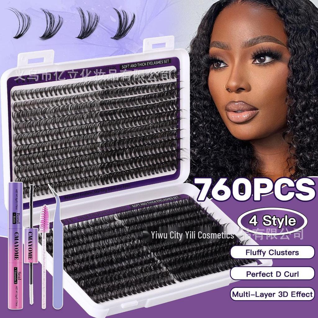 Natural 760 Cluster False Eyelashes - Curved Segmented & Self-Adhesive Individual Lashes