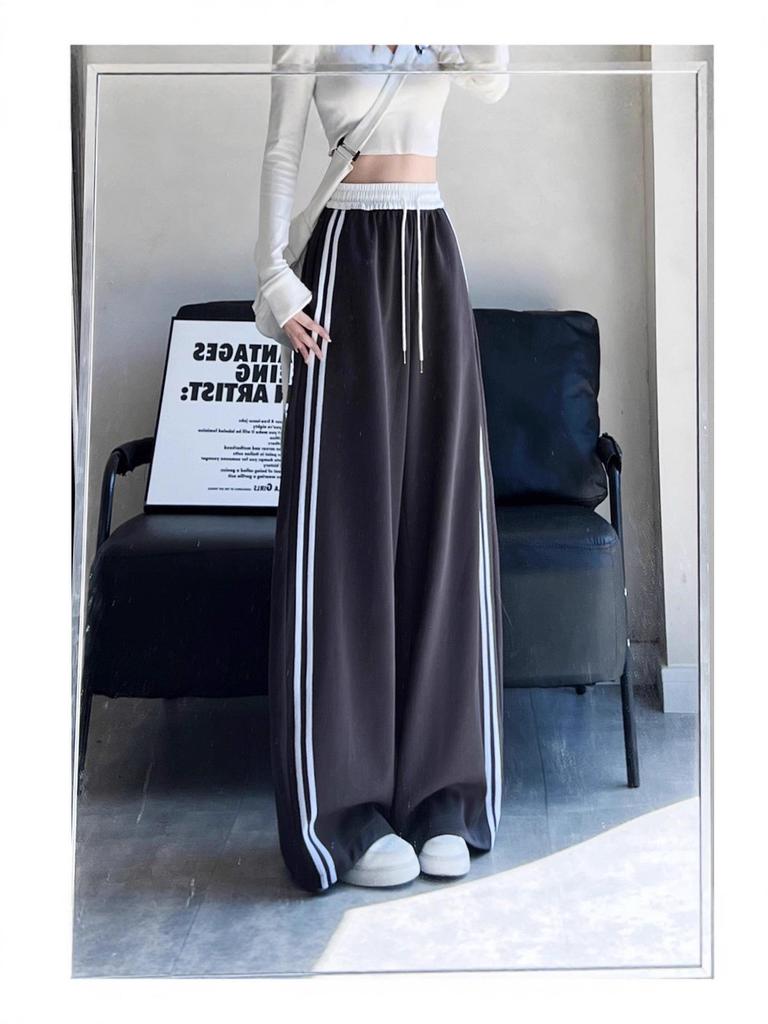 Huamian 2025 Autumn Wide-Leg Striped Sweatpants for Women - Versatile and Casual Drape Style