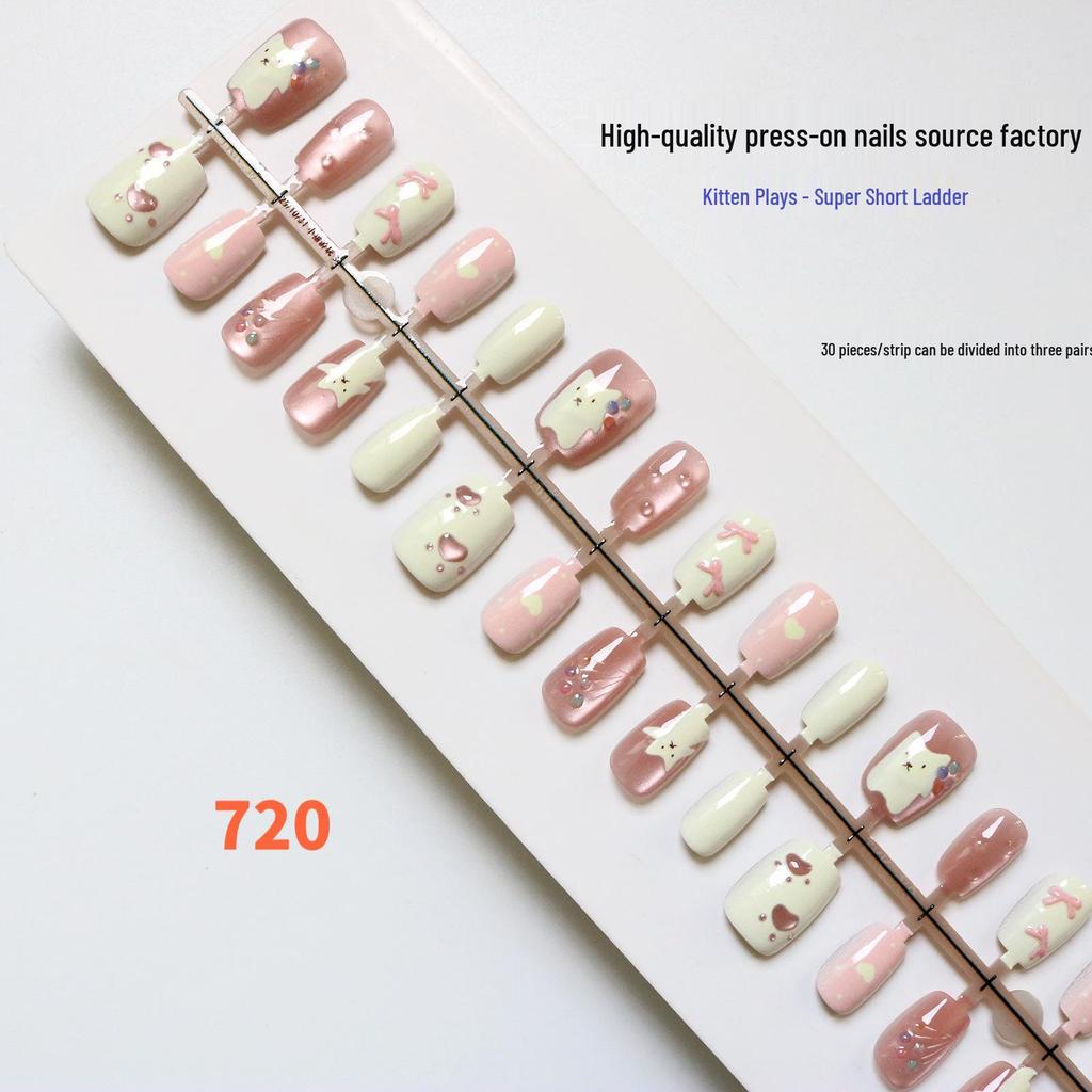 Rosa Katzenpfoten-Tragbare Nägel - Süße, Niedliche Nagelspitzen und Kunst-Sticker