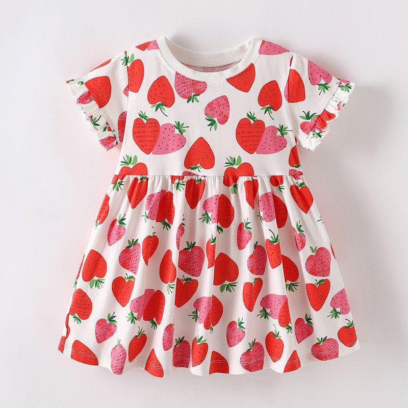 Girl Dress Summer New Arrival Fashion Children Strawberry Short Sleeve Princess Dress Western Style Kids' Skirt 0-8 Years Old 9