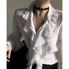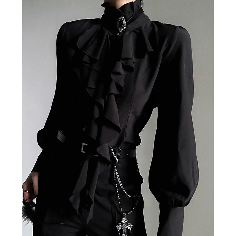Dunkle Japanische Viktorianische Vintage Gothic Bluse Schwarz Laternenärmel Rüschenhemd Harajuku Y2K Punk Streetwear Cosplay