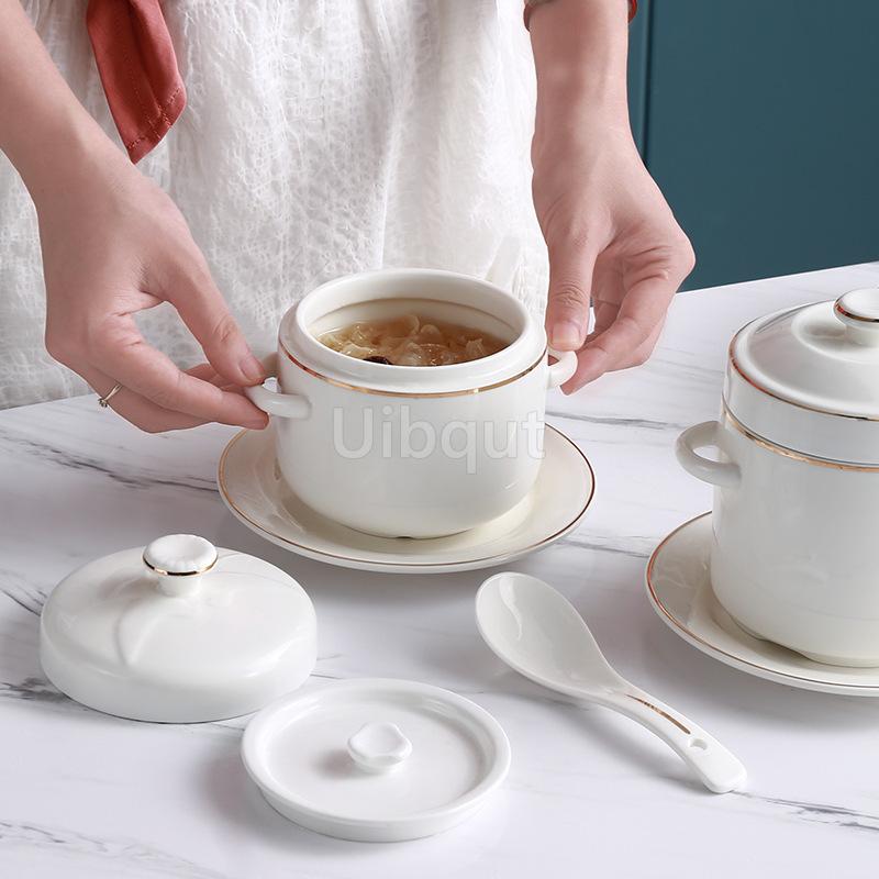 Creative Relief Ceramic Stew Pot Korean Pure White/golden Bone Porcelain Stew Bowl Bird's Nest Steamed Egg Bowl Kitchen Supplies