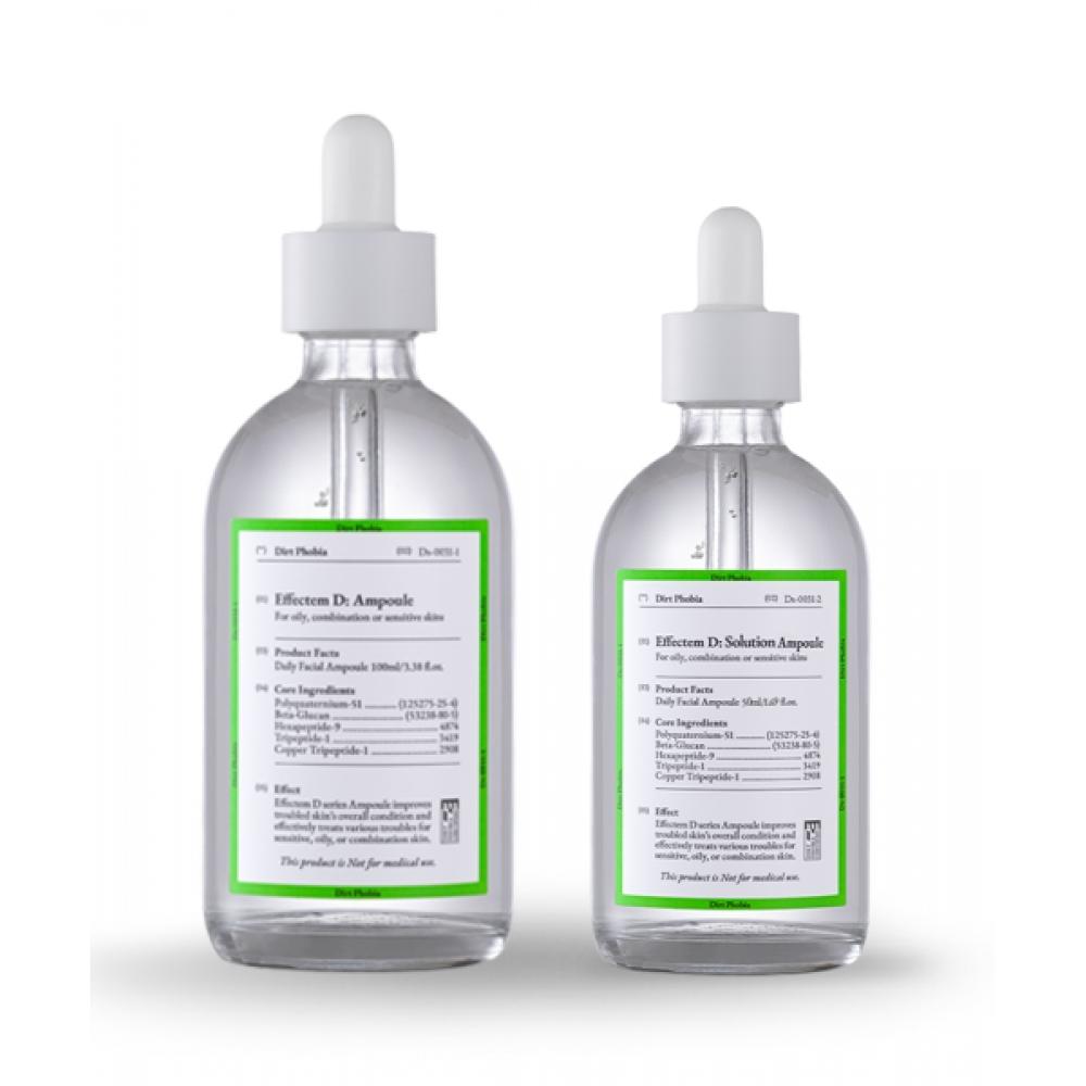 Alle Inhaltsstoffe, die gemäß Kosmetikgesetz aufgeführt und gekennzeichnet sein müssen: Effectum D Ampulle 50ml & 100ml: gereinigtes Wasser, Dipropylenglykol, Propandiol, 1,2-Hexandiol, Niacinamid, Algenextrakt, Kapuzinerkresseblatt-Extrakt, Centella Asiatica-Extrakt, Schwarze Bohnen-Extrakt, Dusong-Fruchtextrakt, Lavendelextrakt, Virginischer Bockshornklee-Extrakt, Nachtkerzenöl-Extrakt, Ulmenrindenextrakt, Pinienkernextrakt, Kudzu-Wurzelextrakt, Ohrkernextrakt, Artischockenblatt-Extrakt, Gelée Royale Extrakt, Apfelextrakt, Acai-Palmenfrucht-Extrakt, Tomatenextrakt, Weißdornwurzelextrakt, Goldwurzelextrakt, Grüner Tee Extrakt, Algenextrakt, Süßholzwurzelextrakt, Ginsengextrakt, Rosmarinblatt-Extrakt, Kamillenblütenextrakt, Lotusblütenextrakt, Propolis-Extrakt, Grüner Tee, Hydriertes Lecithin, Zypressenwasser, Camellia Sinensis Öl, Balsamischer Wacholderöl, Beifußöl, Octyldodeceth-16, Acrylate/C10-30 Alkyl Acrylate Crosspolymer, Tromethamin, Methylpropandiol, Glycerin, Raffinose, Allantoin, Butylenglykol, Adenosin, Dinatrium-EDTA, Beta-Glucan, Polyquaternium-51, Fructooligosaccharide, Hydrolysierte Hyaluronsäure, Acetylhexapeptid-8, Kupfertripeptid-1, Tripeptid-1, Palmitoylpentapeptid-4, Hexapeptid-9, Hydroxyacetophenon, Ethylhexylglycerin, Pentylenglykol, Caprylylglykol