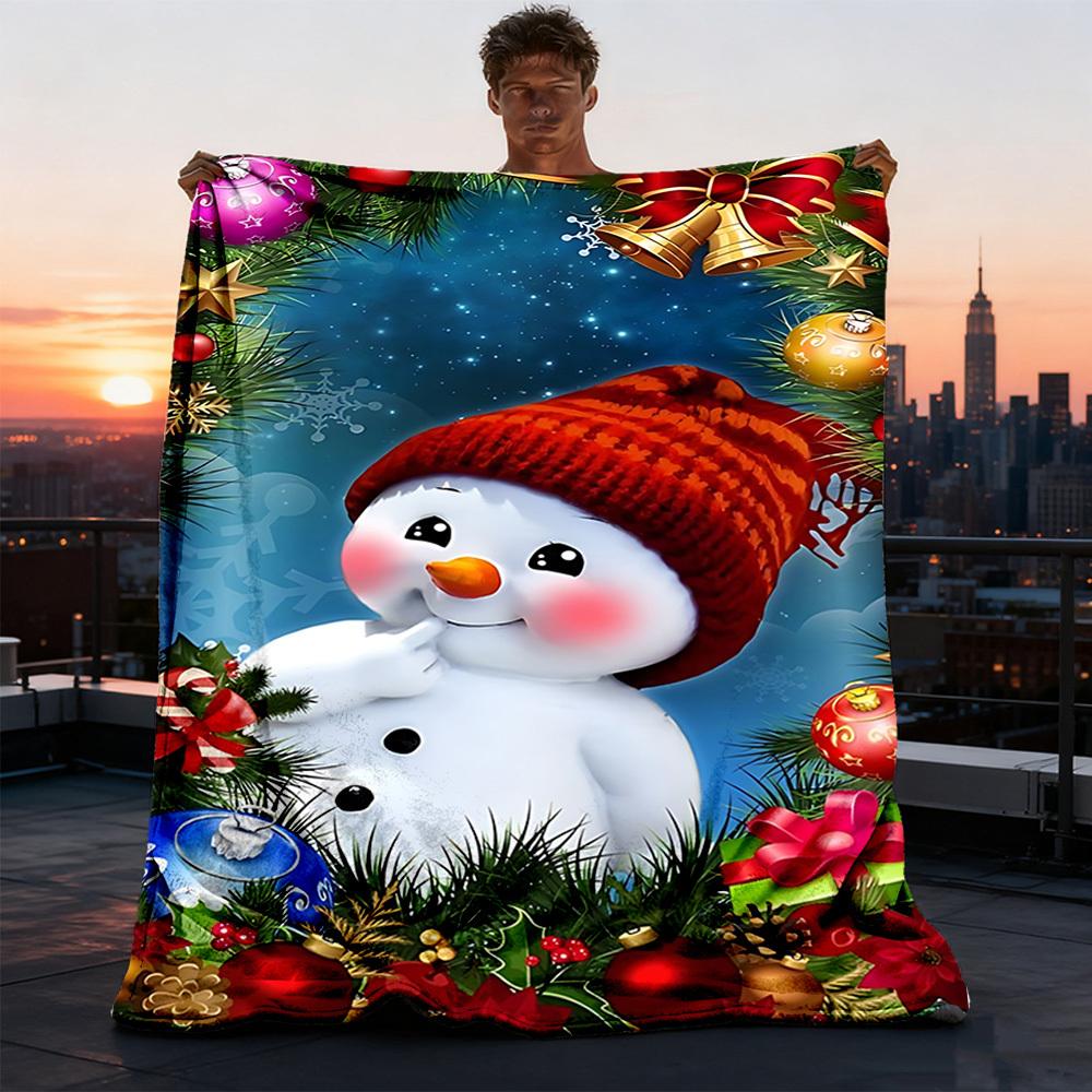 1pc Christmas Snowman Outdoor Personalized Flannel Blanket, Soft, Lightweight Personalized Flannel Blanket, Digital Printing,