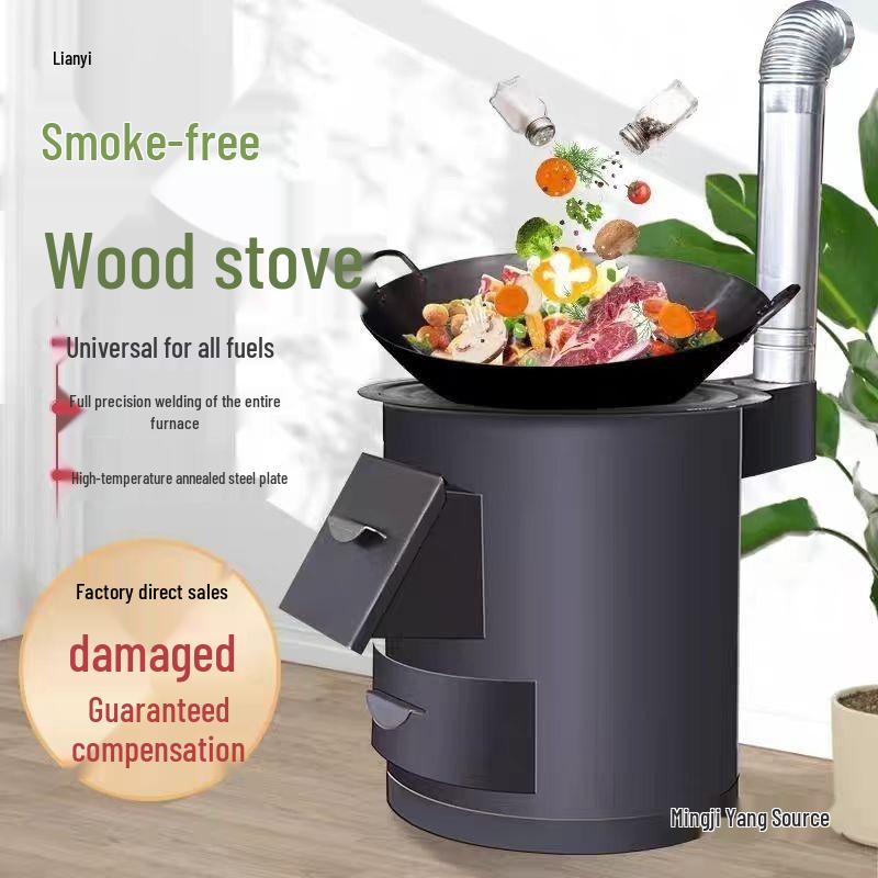 Tragbarer rauchloser Holzofen für den ländlichen Gebrauch: Energieeinsparender, Großer Gusseisentopf für den Haus- & Hofgebrauch