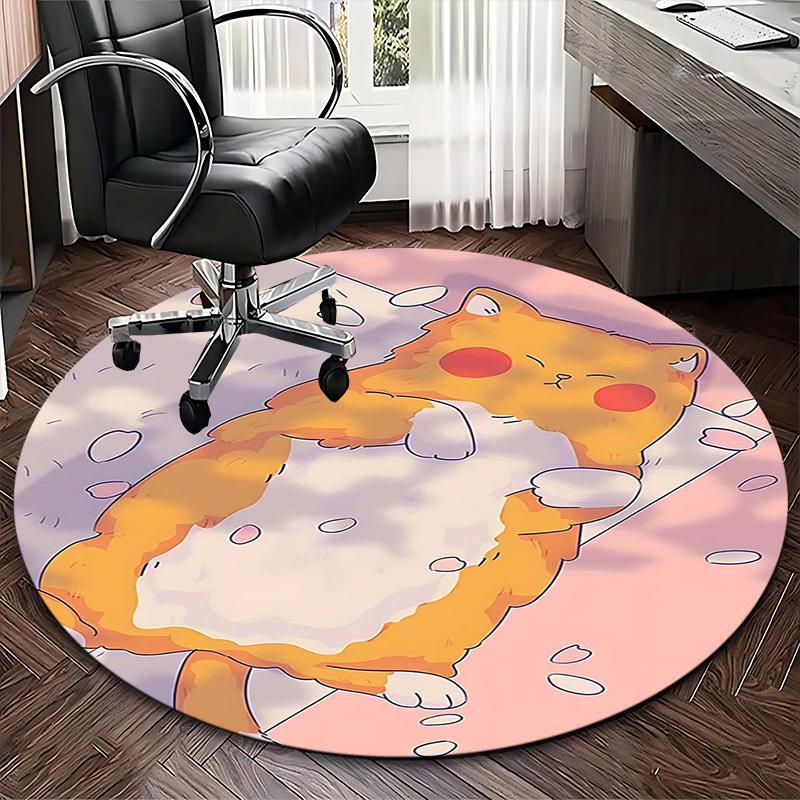 1pc Anime Cat Round Carpet Office Chair Mat, Non Slip Rug for Home Decor, Gift, Office, Living Room, Bedroom