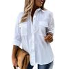 Frauenhemd verfügt über seitliche Split- und Pattentaschen, die Ihren modischen Charme präsentieren können. Das lässige Hemd mit herunterklappbarem Kragen und einreihigem Design sorgt für einen Hauch von Intellektuellem.