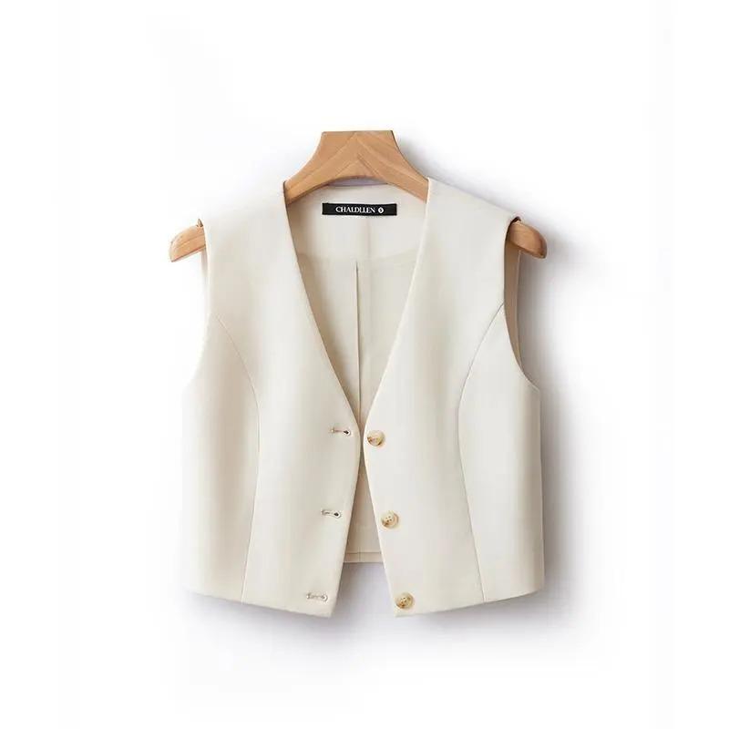 Französische Schwarze Anzugweste für Damen Äußeres Design Schichtweise Kleine Weste Kurzes Oberteil