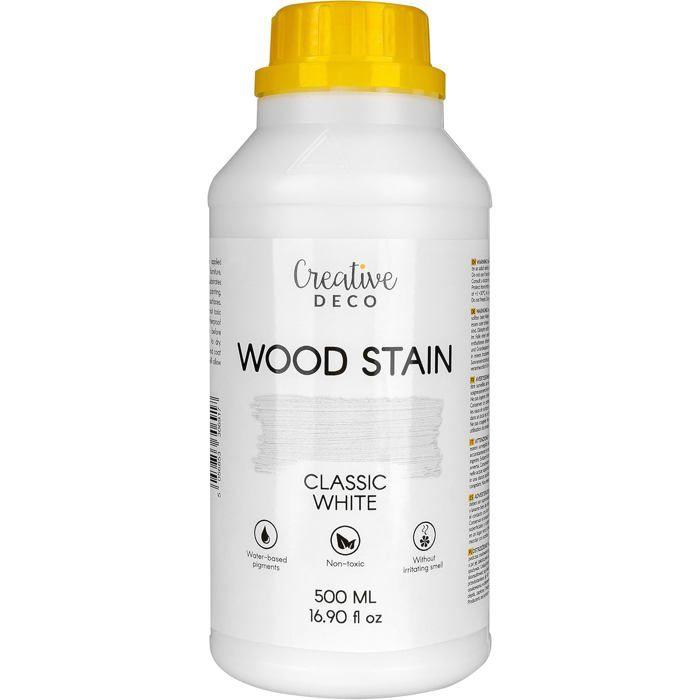 Teinture Bois - CREATIVE DECO - Blanc - 500 ml - A Base d'Eau - Résistante aux Intempéries