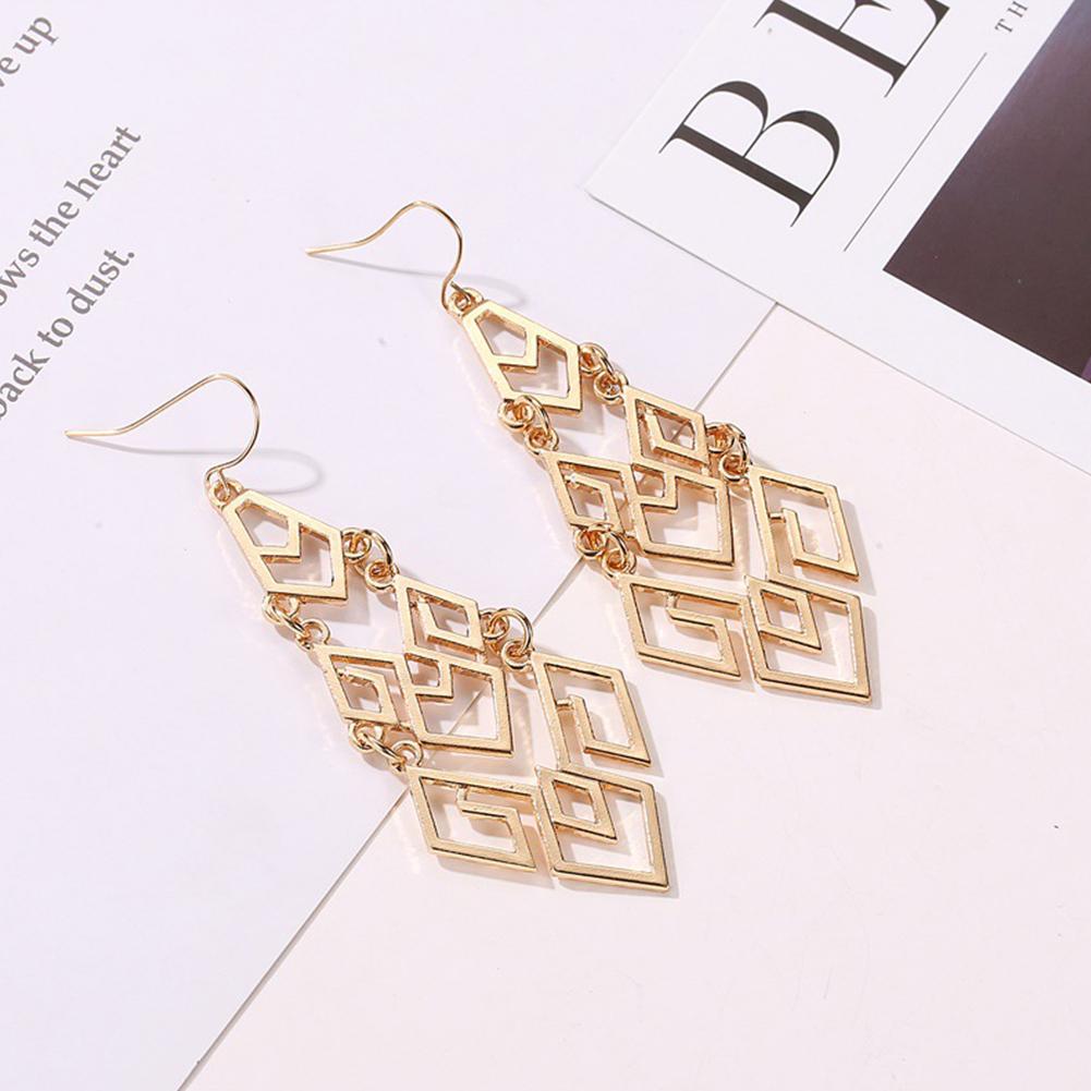 Women Diamond Hollowing Long Exaggeration Geometry Earrings