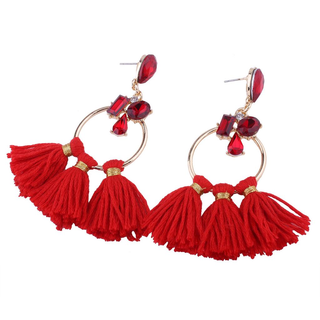 Damen Ethno Bohemian Übertrieben Fächer Fransen Lange Quasten Glitzernde Strasssteine Hängende Ohrringe Ohrhänger