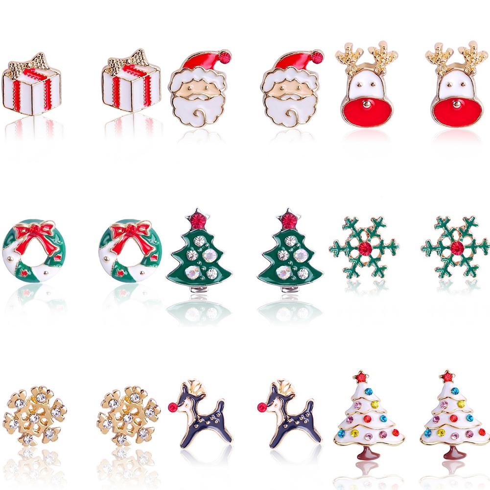 Lady Christmas Rhinestone Ear Studs Santa Snowflake Deer X-mas Tree Earrings