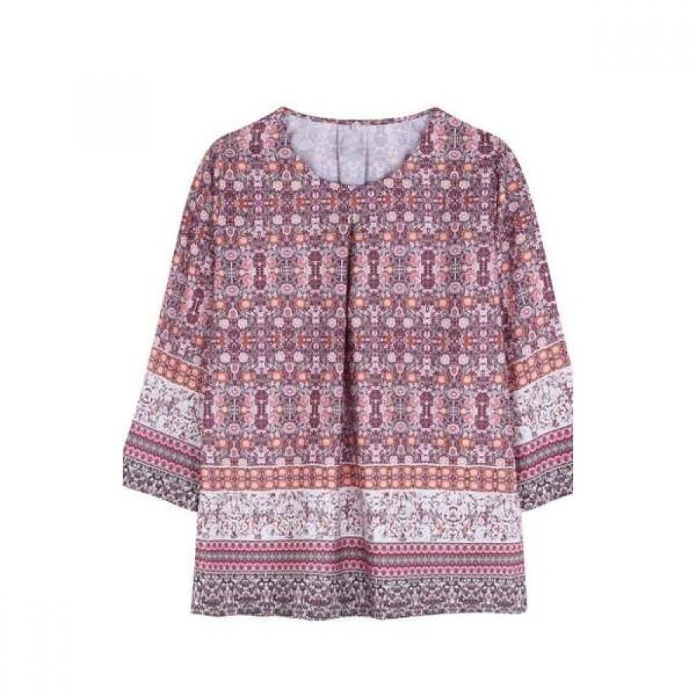 Wakoru Lightweight Rayon Border Printed Women's Top (WPAA203S) is made from lightweight rayon material that is thin, light, and not see-through. This product is ideal for comfortable wear at home as both pajamas and homewear, featuring a subtle flower pattern that adds femininity. With a 7-part sleeve design, it is also suitable for transitional seasons.
