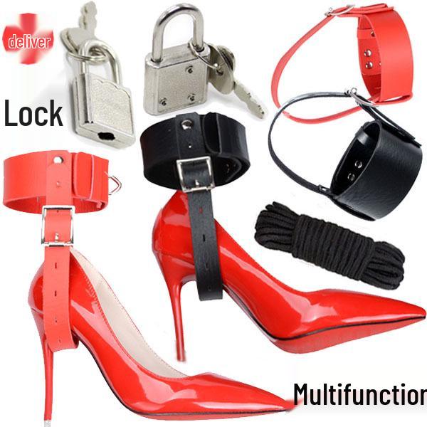 Flirt-Bondage-Set für Erwachsene: Hohe Absätze, Verriegelbare Riemen, Handschellen, Fußfesseln