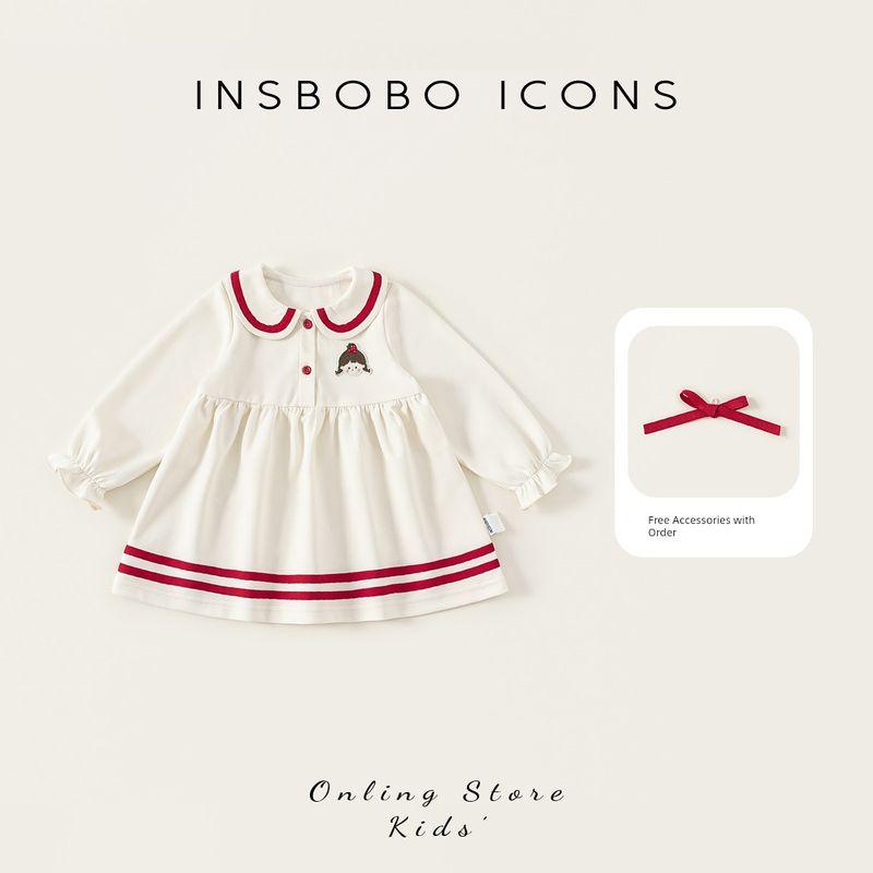 Insbobo Girls' Dress 2026 Spring New Princess Dress One-Year-Old Baby Girl Dress Kidsren's Red Dress