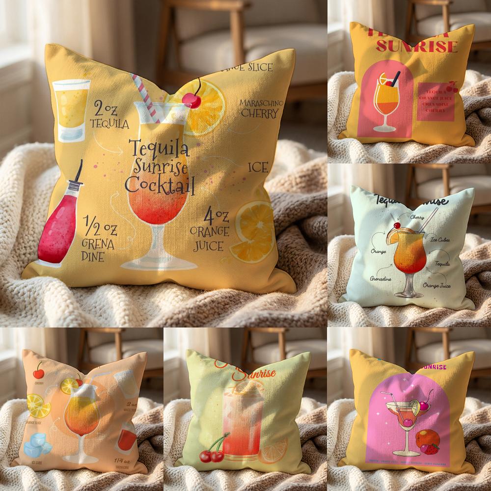 Tequila Sunrise Cocktail Kissenbezug Mehrzweck-Kissenbezug für Zuhause & Auto - Wendbar, Weich & Langlebig für den täglichen Gebrauch