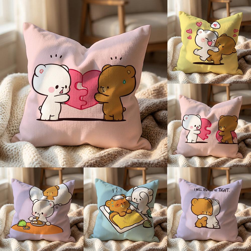 Cute m-Milk and Mocha bBears Cushion Cover Multi-Scene Pillow Cover for Home & Car - Reversible, Soft & Durable for Daily Use