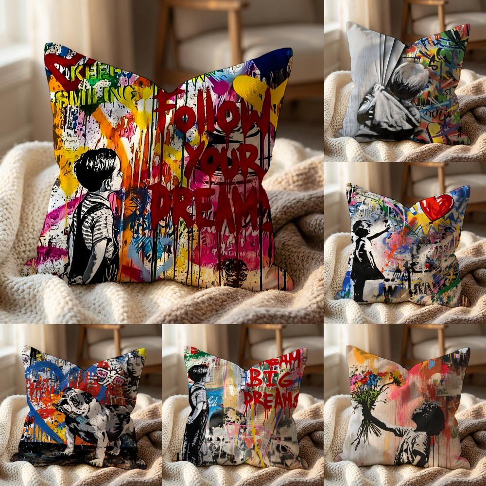 B-Banksy KÜNSTLER Kissenbezug Mehrzweck-Kissenbezug für Zuhause & Auto - Wendbar, Weich & Strapazierfähig für den täglichen Gebrauch