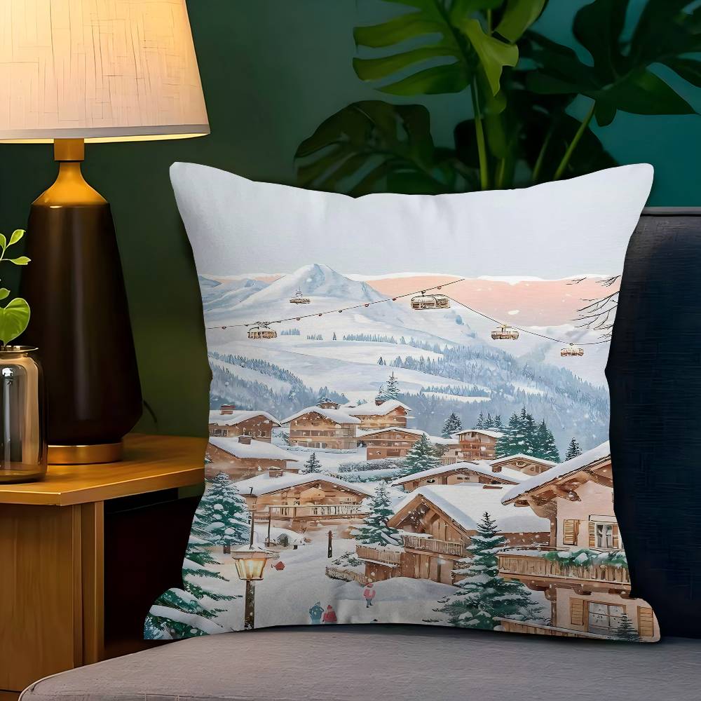 Winter Holiday Town 45*45cm Cushion Cover Pillow Cover Decor Pillowcase Home Pillowcase For Couch Pillow