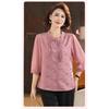 Damen Bluse Rostrot Manin-Kragen Halbe Ärmel mit Knoten-Detail