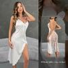 Reines Verlangen Spitze Nachthemd Hoher Schlitz Sexy Cami Mädchen Loungewear 825 Verführerische Verspielte Nachtwäsche mit Weichen Wimpernspitzen-Details