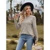 HNXC Damenmode, lässig, einfarbig, langärmelig, O-Ausschnitt, Blusen und Hemden