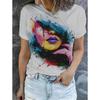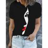 Fashionable Women's Abstract Patterns 3D Printed Women's Facial Features Casual Short Sleeved Round Neck T-shirt Regular Top